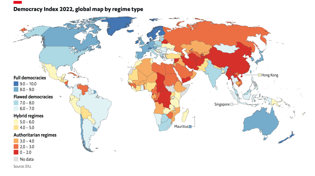- Quinto. Analizan la estabilidad política de los países: Estado de la democracia, el respeto a la institucionalidad, el índice de corrupción y el respeto al derecho de las personas, es decir, los Derechos Humanos. Gobierno que no respeta a su propia población demuestra prácticas deshonestas que rebalsarán hasta afectar la estabilidad jurídica de las inversiones. Esta data está contenida en estudios de los mismos organismos internacionales como el Banco Mundial, ademas de publicaciones especializadas y de gran prestigio como “The Economist” y otras. De inmediato me recomiendan descartar todos los países con democracias “hibridas”, es decir, corruptas, desinstitucionalizadas y al borde del totalitarismo. Descartan a Mexico, Guatemala, Salvador, Honduras, Bolivia, Paraguay, Ecuador y Perú.
