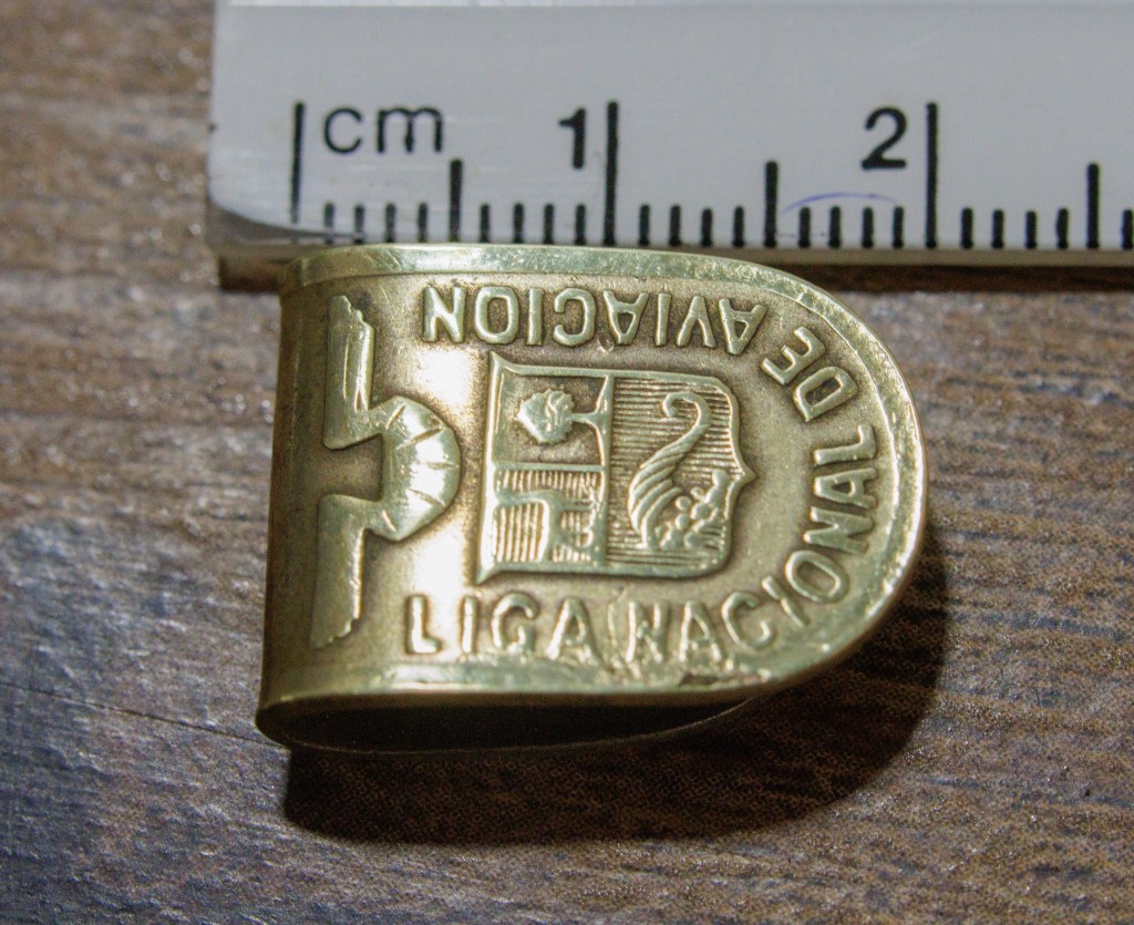 Hay ciertas ocasiones en que la revisión de artículos de los seres queridos que ya partieron trae interesantes sorpresas. Entre las cosas de mi padre encontré lo que parecía un viejo botón de bronce. Luego de una rápida limpieza con pulidor emergió un interesante sello, nada menos que el emblema de la Liga Nacional de Aviación. Consulté con un amigo historiador sin mayores resultados. Luego hice lo que cualquier persona que desea conocer algo debe hacer: consultar a los buscadores de internet. Allí encontré un interesante relato, pluma de un oficial general de la FAP, don Oscar Carrillo, quien escribió una interesante reseña acerca del antiguo aeródromo de Collique (https://eruizf.com/aviacion/histo/resena_hist_eac_del_peru.html)