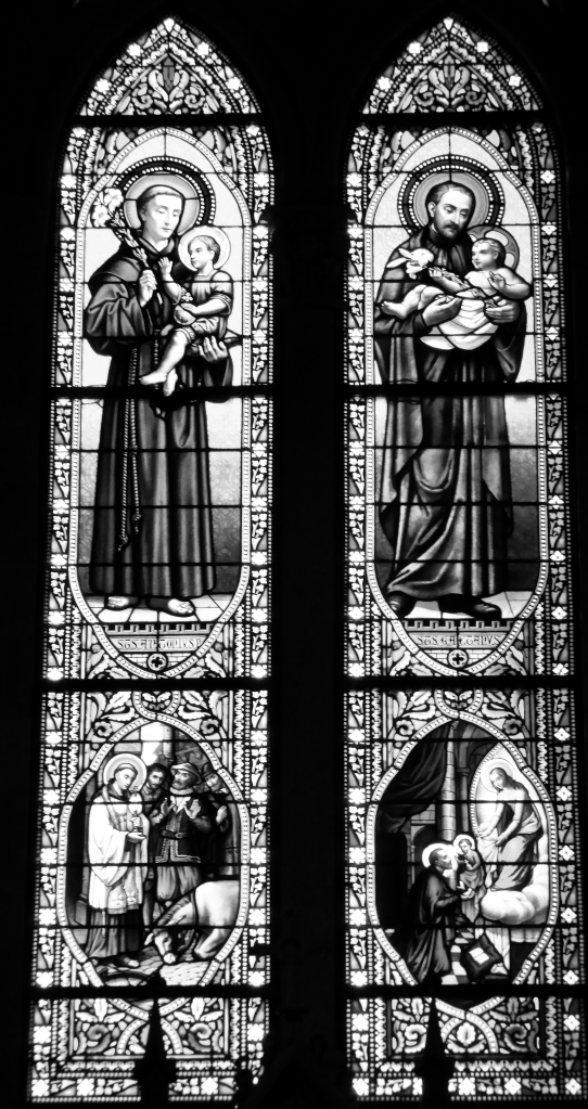 Hermosos vitrales cubren las ventanas.