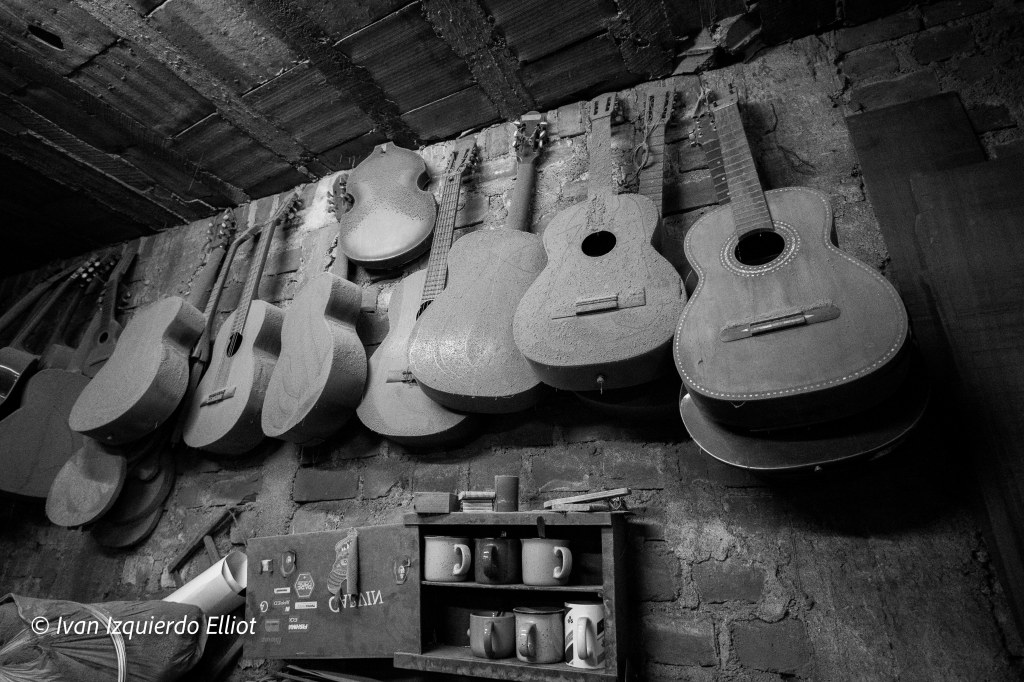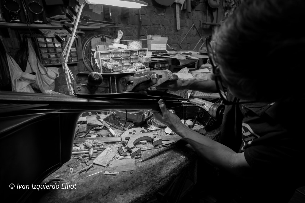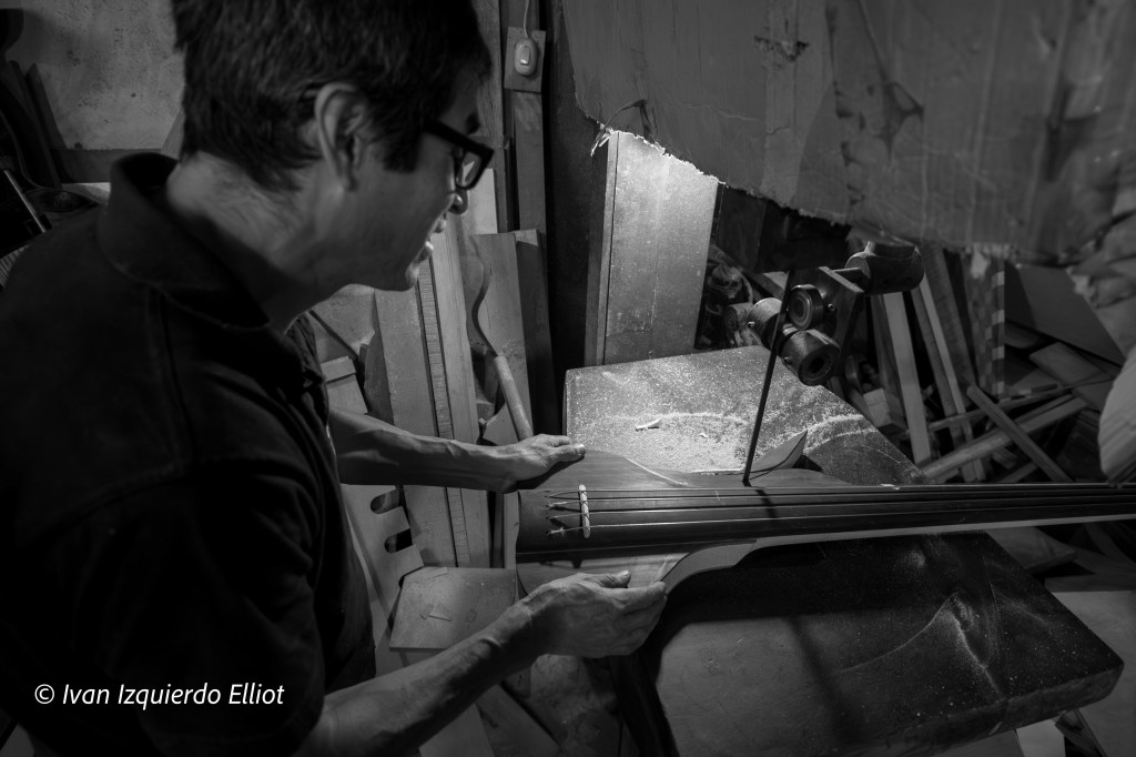 Atravesamos una pesada puerta hacia un amplio espacio colmado de maderas y máquinas, es la catedral personal de Antonio Huamaní. Es un privilegio capturar la vida de un artista, si esto implica rodearme de madera aún mejor, debido a mi especial relación con ella. El taller del luthier es la mezcla perfecta. Tener el privilegio de observar la creación de un instrumento musical es como un retorno al pasado, una máquina del tiempo que nos alivia del mundo superficial e instantáneo.