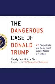El libro, “The Dangerous Case of Donald Trump” (2017), editado por la doctora forense Bandy X. Lee, reúne ensayos de 27 psiquiatras, y en ediciones posteriores, por 37 profesionales de la salud mental, en el que expresan su preocupación por el impacto psicológico y social del presidente Donald Trump. Concluyen que la conducta del sujeto representa un “peligro claro y presente” para la democracia, la seguridad nacional y la salud mental colectiva del país y ahora, también para la seguridad mundial. Los autores destacan patrones como el narcisismo maligno, impulsividad, la falta de empatía y la tendencia a distorsionar la realidad y mentir.