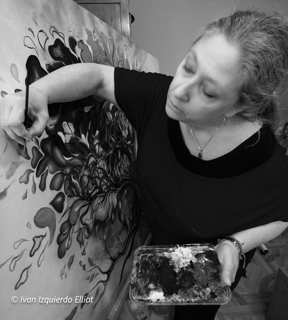 Vanessa es una artista con la particular capacidad de intuir las respuestas del misterio más profundo de nuestras almas, el misterio de lo natural y de lo oculto. Su descubrimiento queda plasmado en los trabajosos lienzos que crea, que abraza, que medita profundamente. Vanessa es la sublime creadora de oníricas formas, de primorosas, de sensuales curvas.