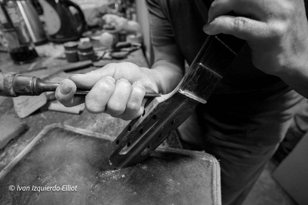 Transformar finas tablas de centenaria fibra en aparatos de sublime belleza, requiere el mayor cuidado, altísimas y exclusivas habilidades (no hay dinero para adquirir estos conocimientos) y una pasión que sobrepasa lo conocido. Las manos del artista empuñan con exquisita seguridad los afilados aceros de las herramientas, básicas, pero perfectas.