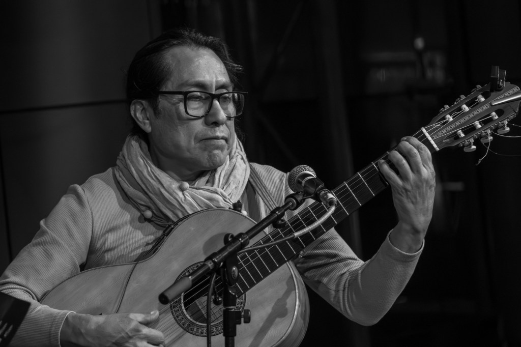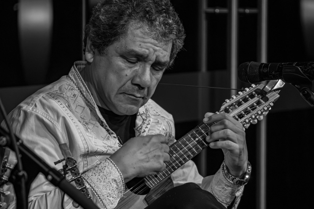 La guitarra de Gomer Valverde da comienzo a un rítmico acorde de compás. El rasgueo acelera mientras el charango ingresa creando la ilusión final… ¡es un tren! Imposible captar la magia de la música del momento en mi medio de expresión: la fotografía, aunque intente con mucho ahínco.